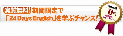 このサイトからお申し込み頂いた方には感謝の気持ちとしまして『英語習得に役立つ特典パック』を差し上げます。その他、特典2つ(条件有り)。全額返金保証。1日10分の学習で24日後には英語がペラペラになります。
